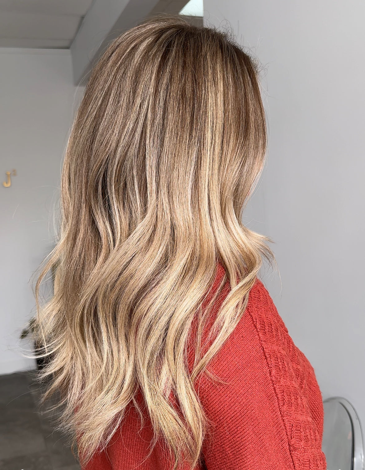 Dégradé doux et harmonieux des racines plus foncées aux pointes plus claires, d'une beauté naturelle.
